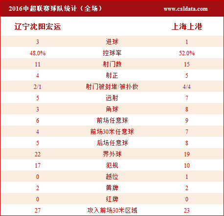 下半场:辽足反扑无功,上港高效终结