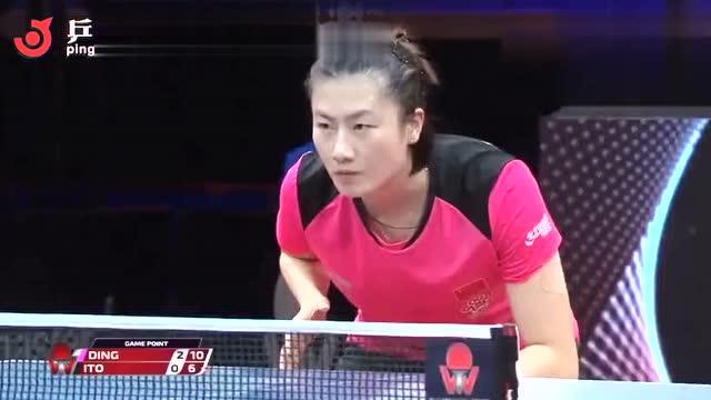 第三局成为转折点。丁宁开局连续失误让伊藤5-2领先,但此后日本小将突然失去对比赛的掌控能力。丁宁连续得分将比分超出,依靠对手正手磕挡失误以9-7领先,并以相同方式拿到局点,伊藤正手回球下网,丁宁11-8将大比分反超为2-1-3。