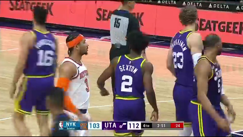 当爵士在节末依靠马尔卡宁和森萨博的零星得分稍稍止血时,比赛的胜负早已失去悬念。第三节单节,尼克斯以47-30净胜17分-。爵士球员的防守脚步明显迟缓,尼克斯的一次次挡拆轻松撕开防线,现场的每一波攻势都让主场球迷提前进入庆祝模式。三节结束时,尼克斯以115-77领先38分。